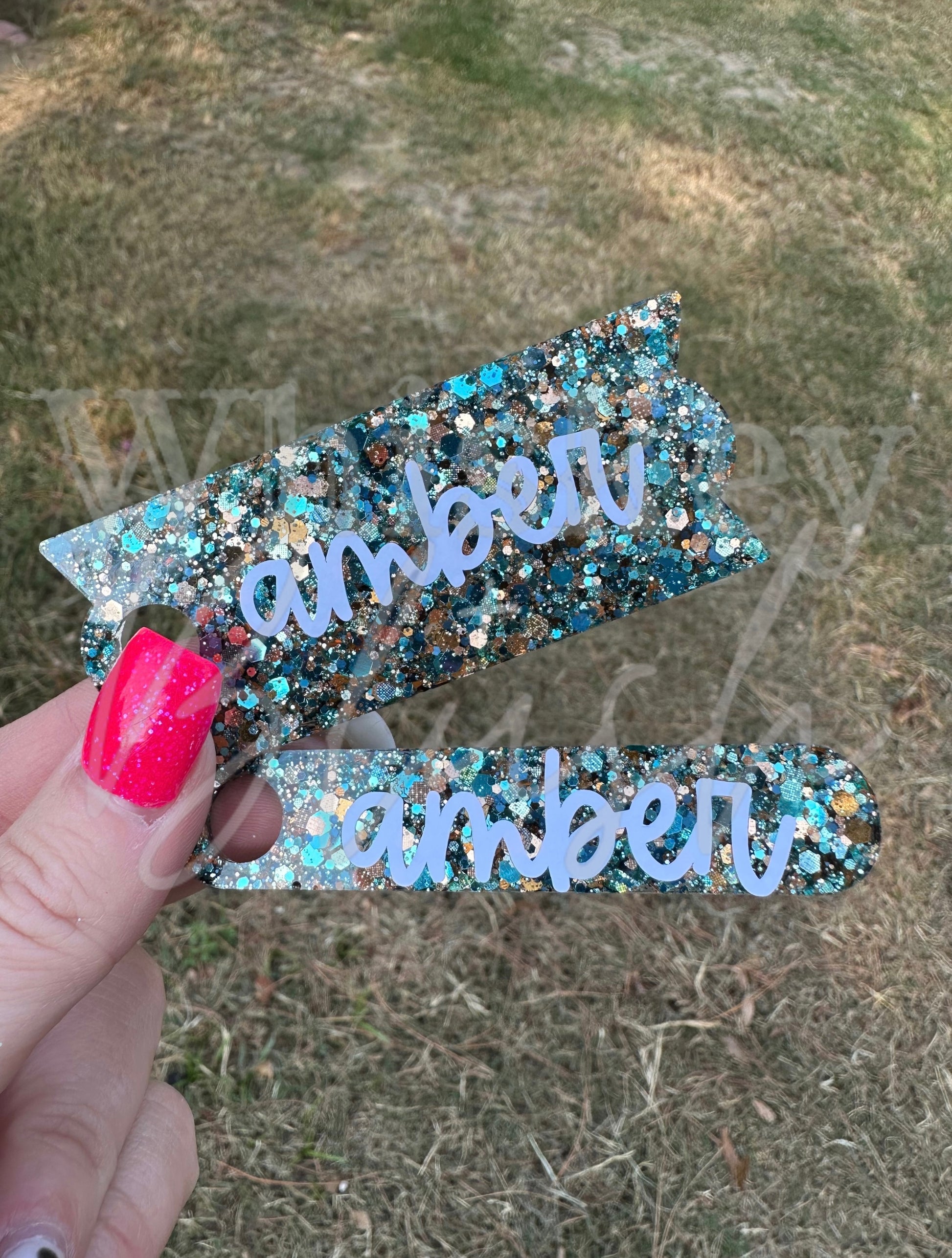 In the personalization section, please add your choice of glitter color, choice of font color, and name you want to appear exactly how you want it to appear.